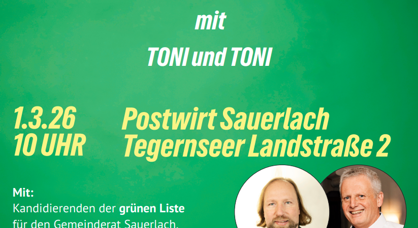 Termine Montag09.02.2026Sauerlach Vorstellung unserer Kandidat*innen mit Marion Seitz Termindetails » Mittwoch25.02.2026Sauerlach Claudia Köhler: Landespolitik trifft Sauerlach Termindetails » Sonntag01.03.2026Sauerlach Frühschoppen mit Toni und Toni Termindetails »